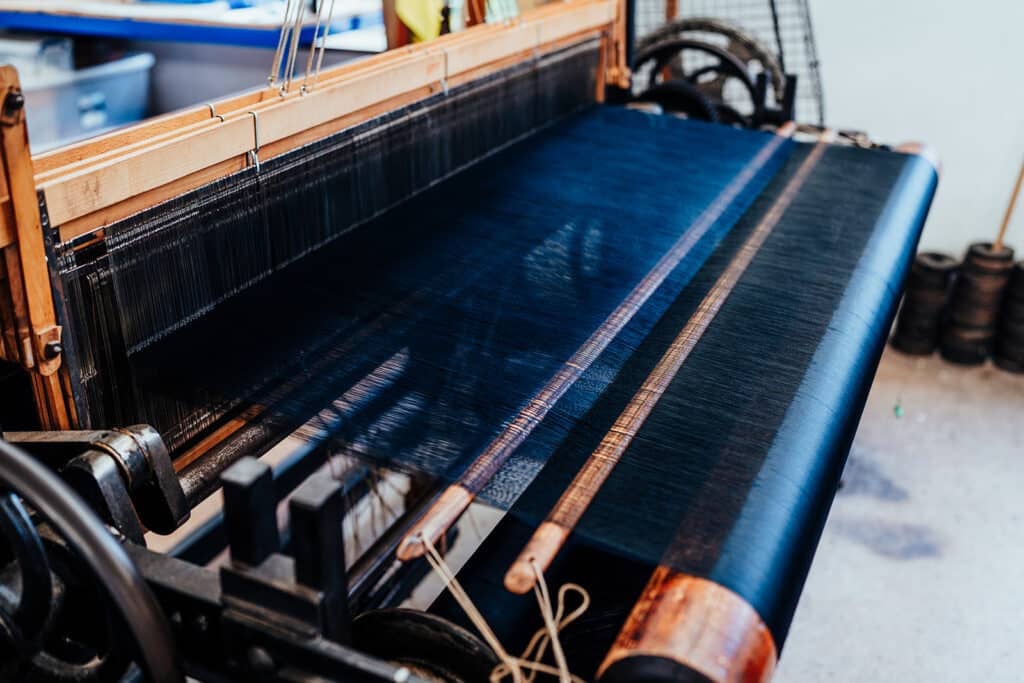 “This way we can weave a lot more in one go, but it does mean that we have to do a lot of trimming at the other end.”